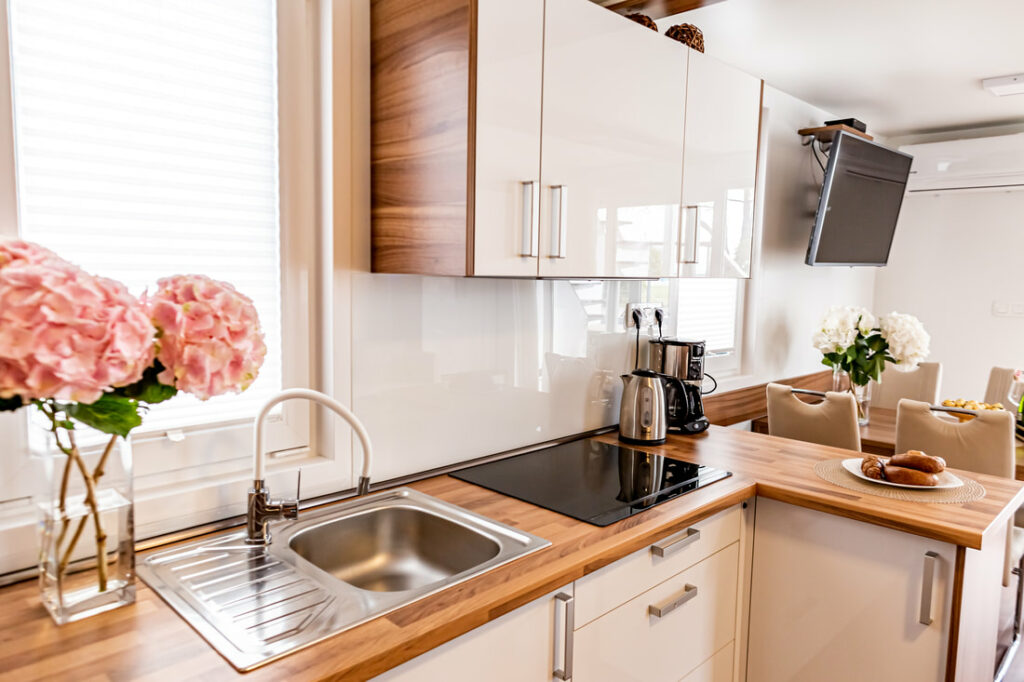 Das AURORA FLOATING SEA HOUSE befindet sich in Marina in Portorož und bietet eine ausgestattete Küche, ein Esszimmer, ein Wohnzimmer mit Sofa, ein Schlafzimmer mit Doppelbett, ein Kinderzimmer mit Etagenbett und ein Badezimmer mit Dusche.