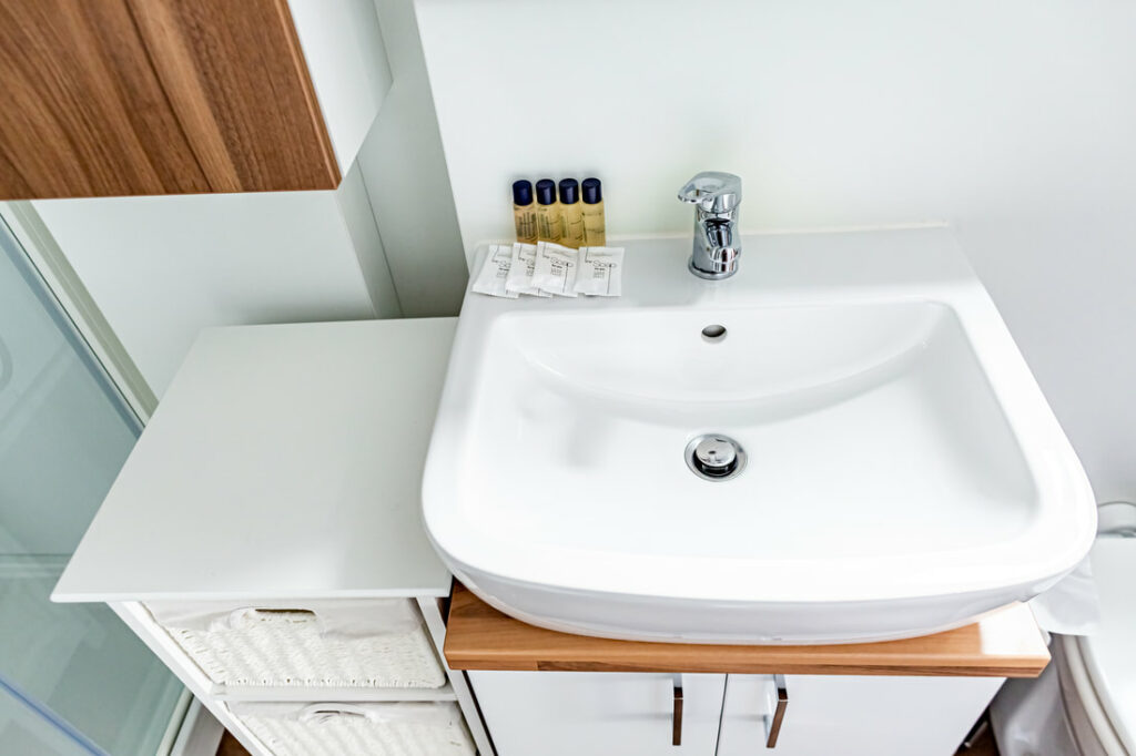Das klimatisierte und beheizte schwimmende Seehaus bietet einen großen LCD-Sat-TV, eine voll ausgestattete Küche mit Geschirrspüler und Mikrowelle sowie ein eigenes Bad mit Dusche und Haartrockner.